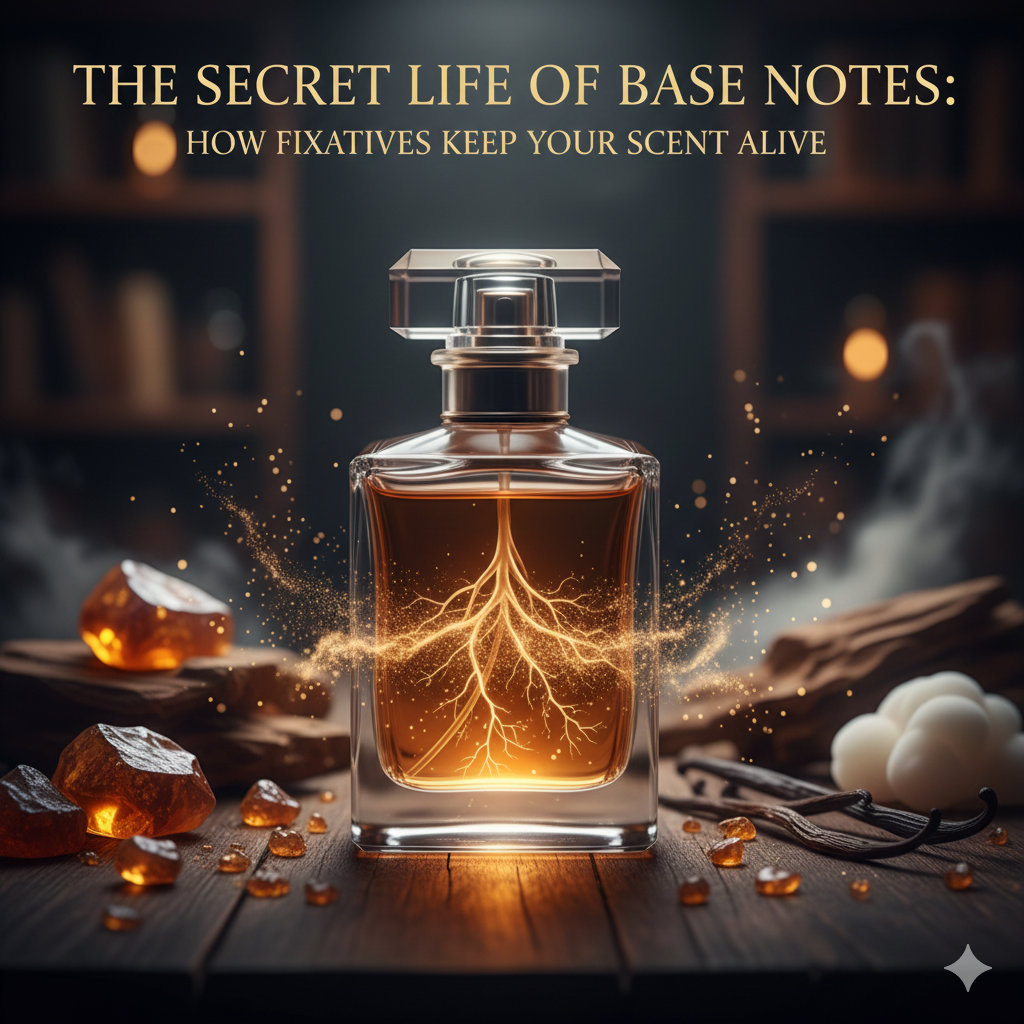 You choose a fragrance for its captivating opening, but you love it for its enduring finish. That enduring power is thanks to fixatives: the unsung heroes of perfumery. These dense, heavy molecules form the base notes, anchoring the fleeting citrus and florals and acting as the scent glue that determines whether your perfume disappears in an hour or lingers all day. We dive into the science of the perfume pyramid, explaining exactly what fixatives are, exploring the most famous ones (like Ambergris, Vanilla, and Musk), and revealing why they are the absolute key to achieving your ultimate goal: all-day wearability.